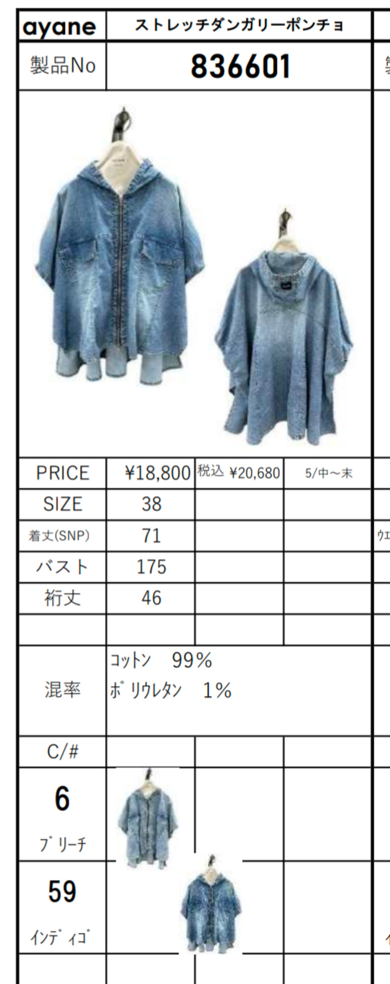 26md.ayane ストレッチダンガリーポンチョ【836601】