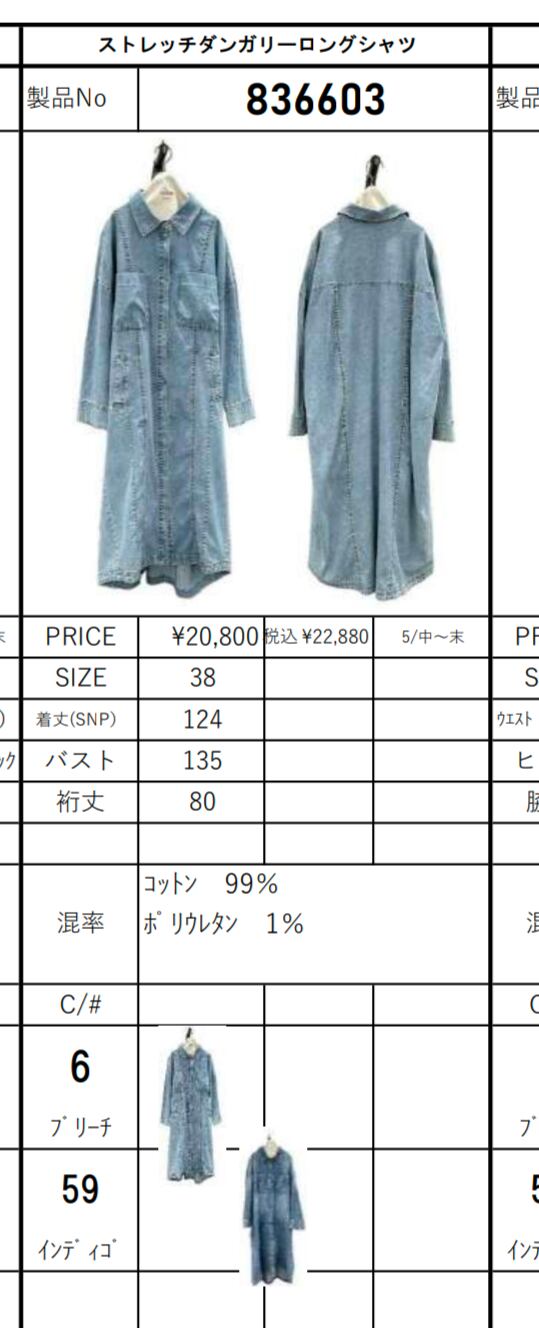 26md ayane ストレッチダンガリーロングシャツ【836603】
