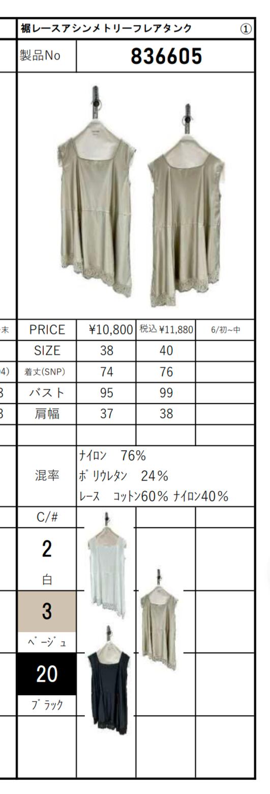 26md ayane裾レースアシンメトリーフレアタンク【836605】