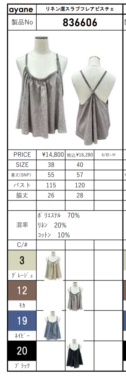 26md ayaneリネン混スラブフレアビスチェ【836606】