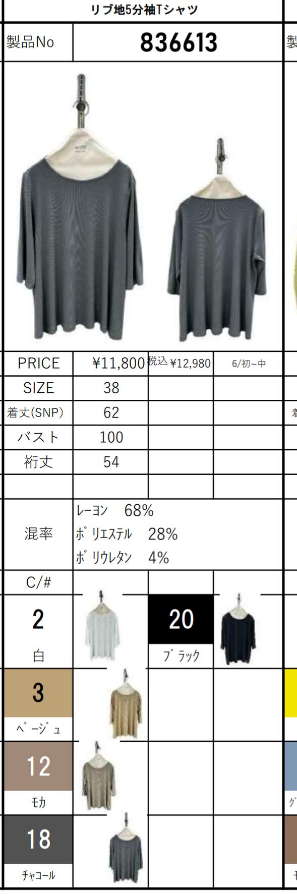 26md ayaneリブ地5分袖Tシャツ【836313】