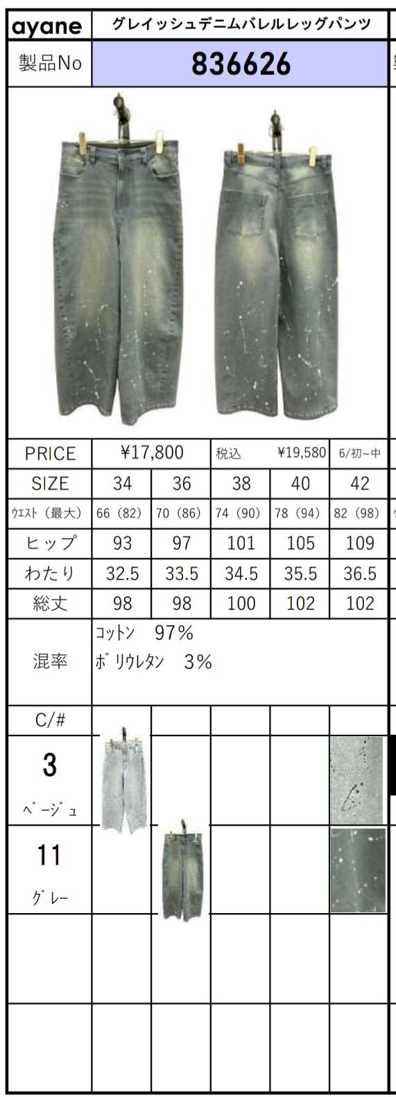26md ayane グレイッシュデニムバレルレッグパンツ【836626】