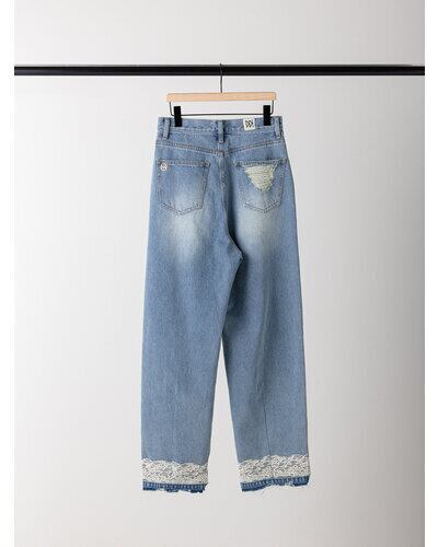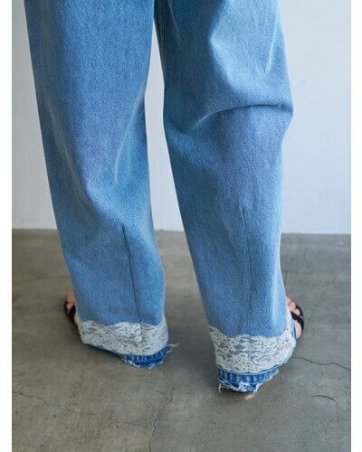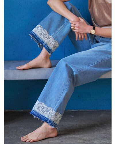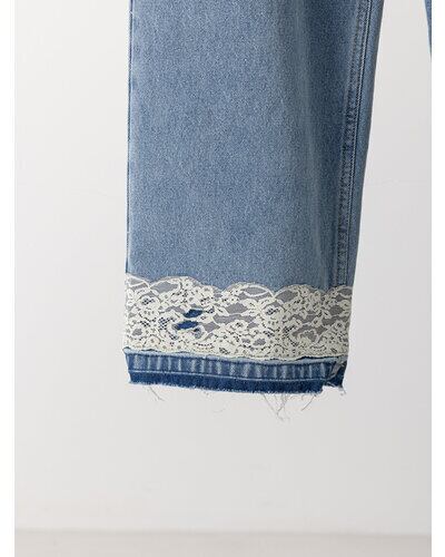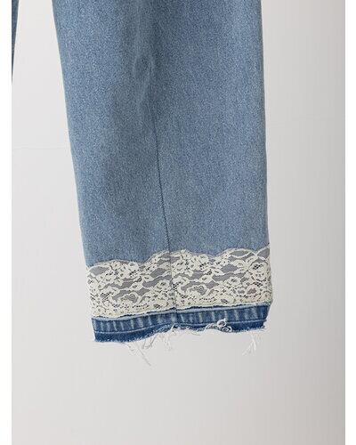 裾に繊細なレースを付けて加工したリメイク風のデニムパンツです。