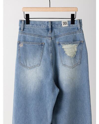 こちらの商品は独特な色目(風合い)を出す為特殊な加工をしております。1点1点多少の表情(色合い・色のムラ・ダメージ・サイズ)が異なります。デニム素材の特性上、着用の際の摩擦や汗により、色落ちや色移りする可能性がありますのでご注意ください。