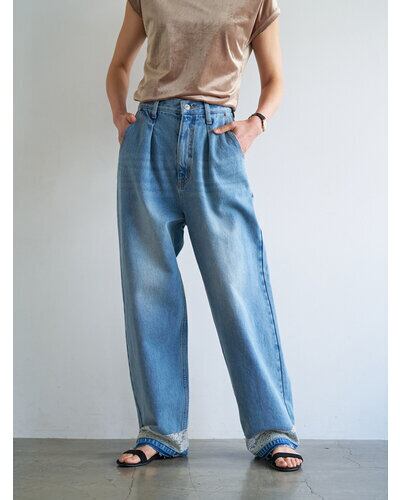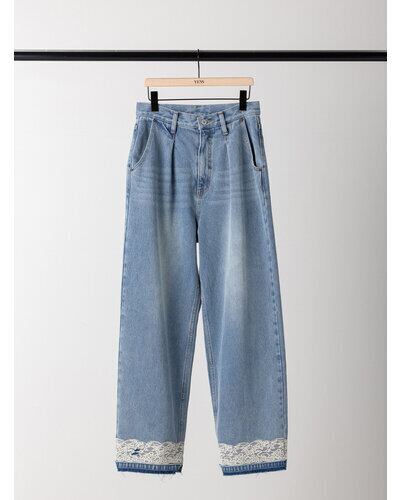26pre-fall YENN [Y263-31097] LACE HEM TUCK DENIM