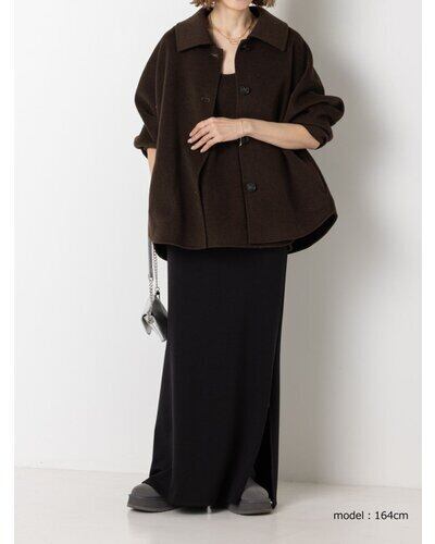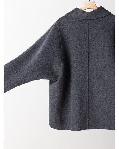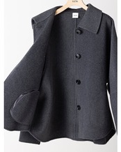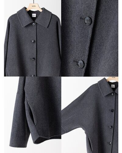 リバー仕立ての衿付きミドル丈コートです。 リバー仕立てとは、2枚の生地を貼り合わせ、手作業でまつり縫いをすることで、縫い目が見えない洗練されたデザインになる仕立てで、軽くて柔らかい着心地が特徴です。