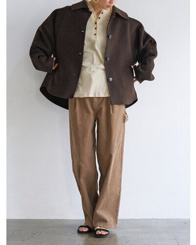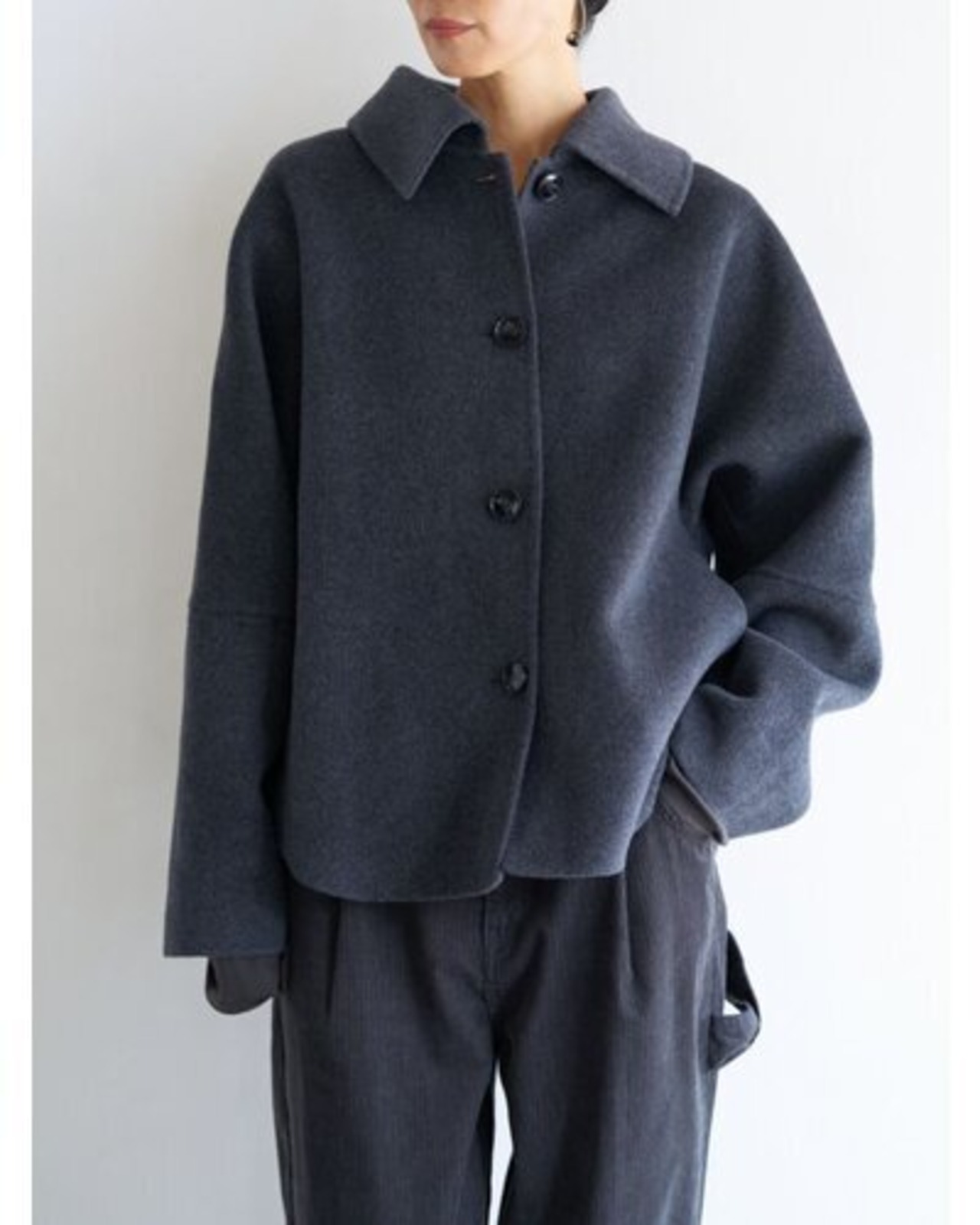 コンパクトな丈感と程よくゆとりのあるボックスシルエットで、装飾を極力省いたミニマルな設計に。素材の上質感が際立つようデザインされています。きれいめからカジュアルまで幅広いスタイリングに対応。軽やかな着心地で、季節の変わり目にも活躍します。