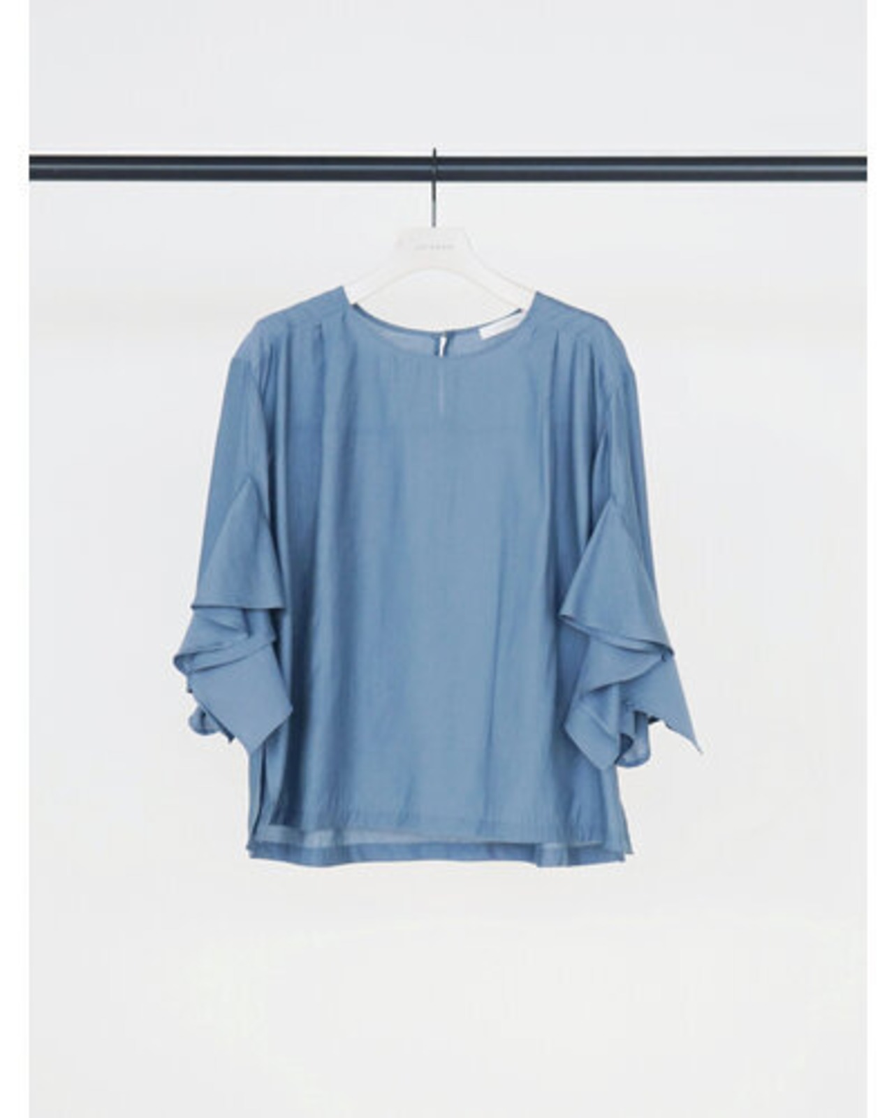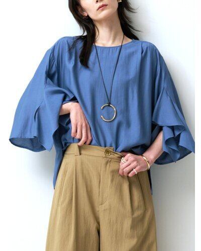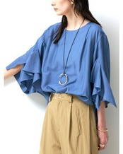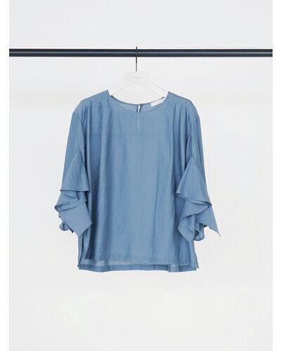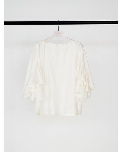 華やかな袖のフリルデザインがポイントのブラウス。