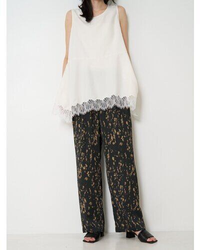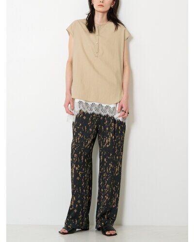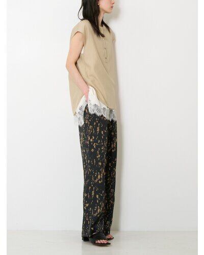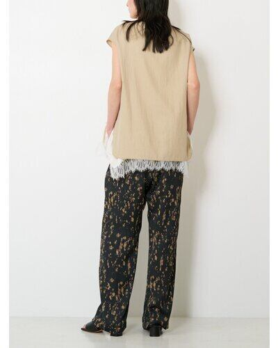 ウエストはゴム仕様でリラックス感のある穿き心地。すとんと落ちるストレートシルエットが脚のラインをすっきりと見せ、ラフになりすぎない上品な印象に仕上げます。