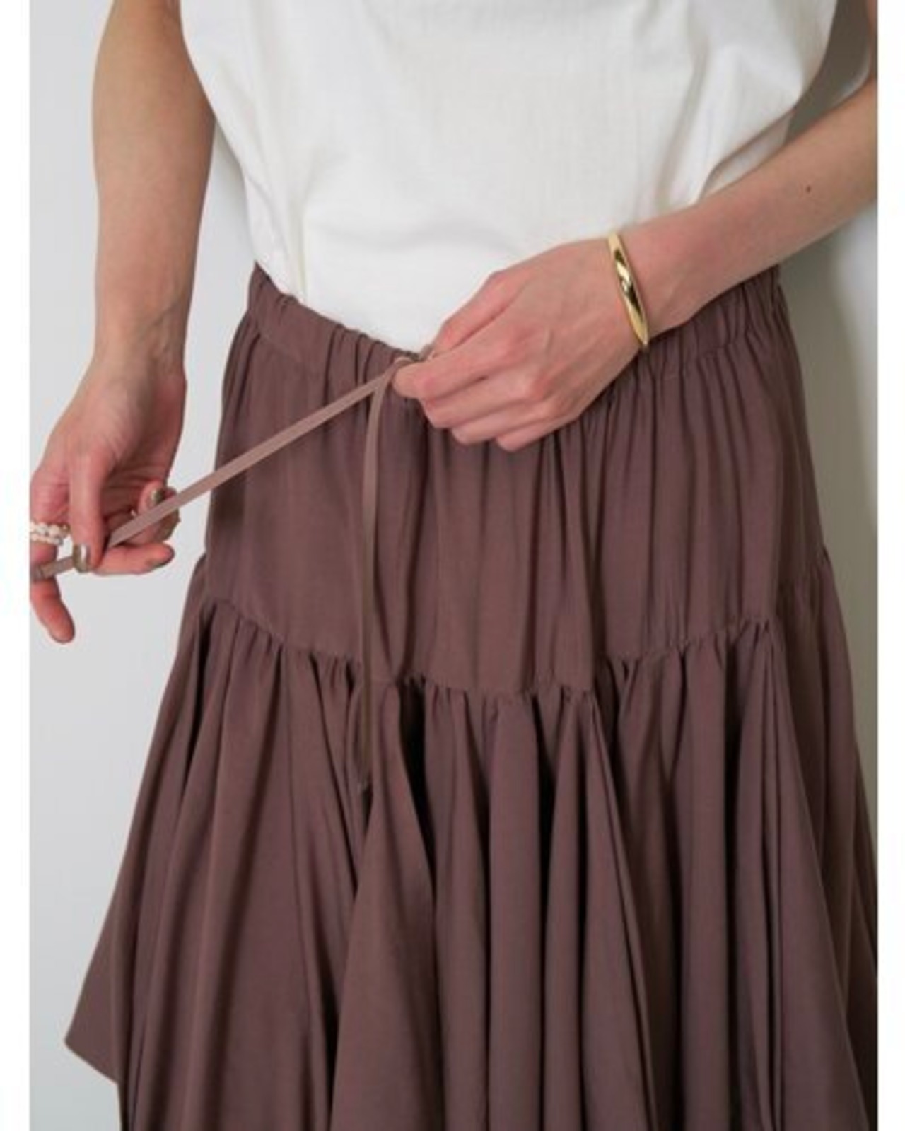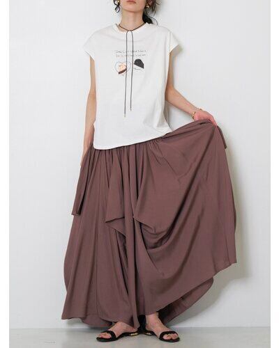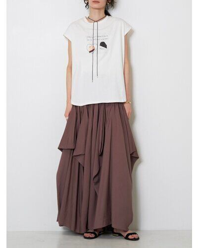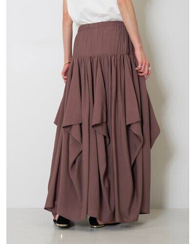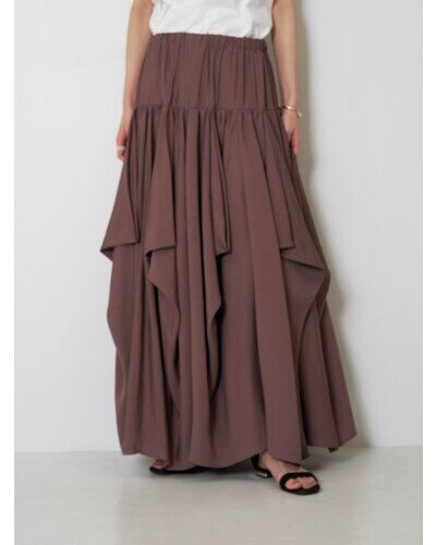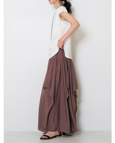 動くたびに揺れる立体的なドレープが印象的なロングスカート。
