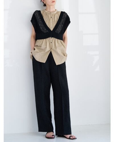 チュニック丈のブラウスと重ねるてもバランスが取りやすく、スタイルアップにもなります!