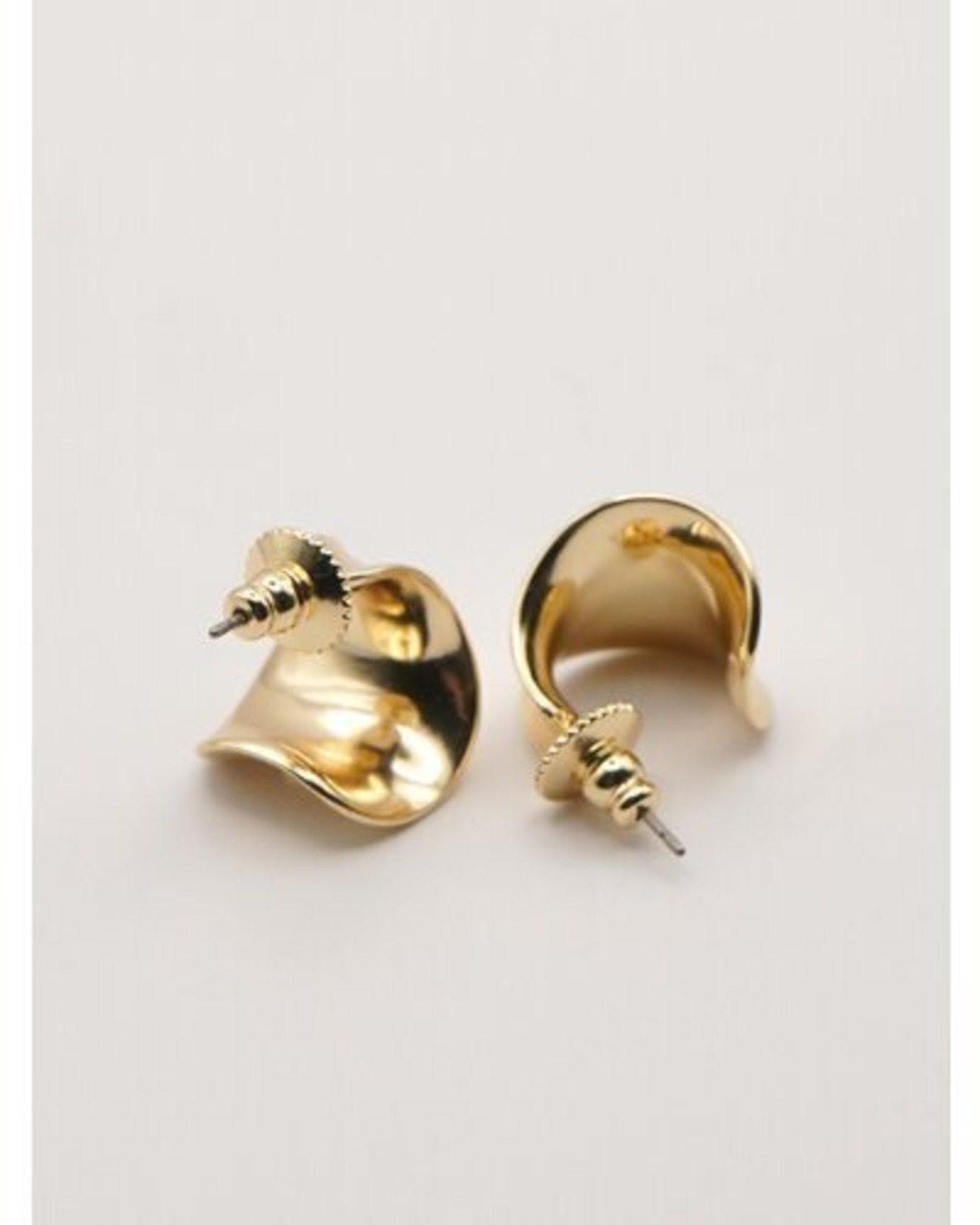 くるっと反り返りのあるエッジの効いた面で丸く弧を描いたミニフープピアス。程良い厚みにミニマルなサイズ感、コンパクトながらも立体的なフォルム、飽きのこないシンプルな大人デザインは普段使いからお出かけコーデまで幅広く活躍する万能ピアスです。キャッチは真鍮製の円盤キャッチをご用意しました。高見えするキャッチなので着用時、後ろからの見え方も◎フープ内側には「CHIGNON」の刻印入り。