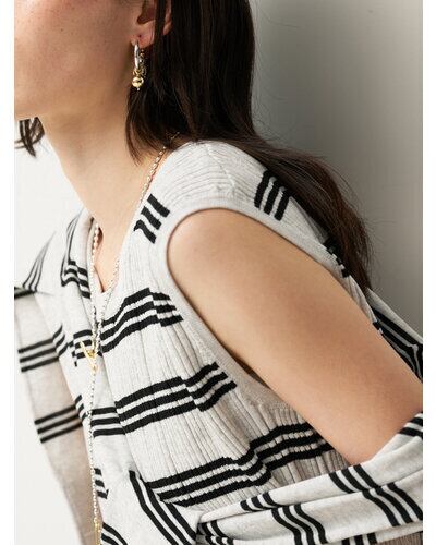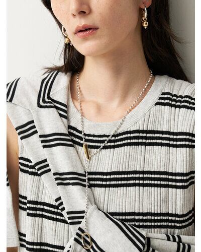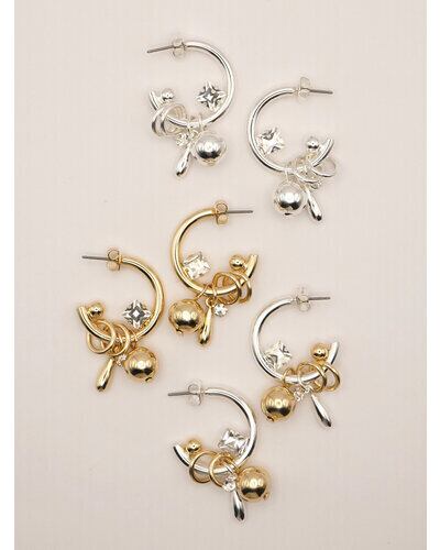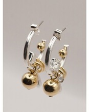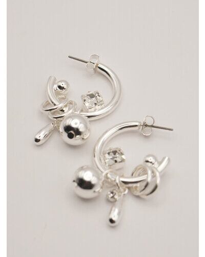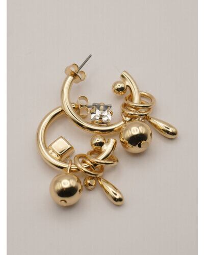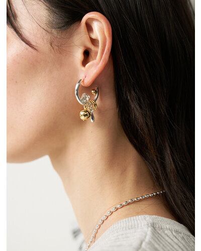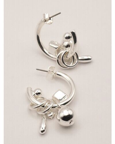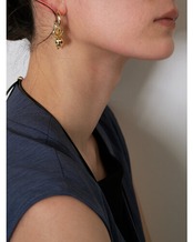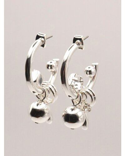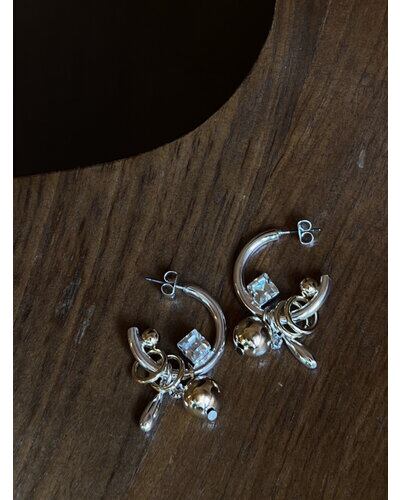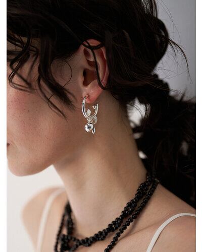 じゃらっとしたモチーフと程良いボリューム感が印象的な遊び心たっぷりのフープピアス。それぞれのパーツをバランスよく配置しつつ動きを活かしたデザインは、着けるだけで一際目立つ主役級ピアスとなっております。カラーはシルバー、ゴールドの他に、SV×GDのミックスもご用意いたしました。同型でイヤリングもご用意いたしております。