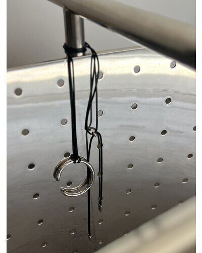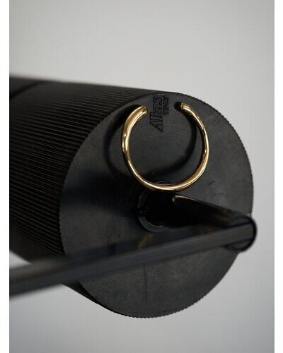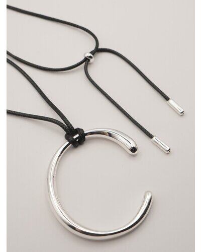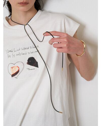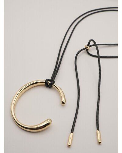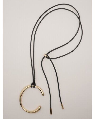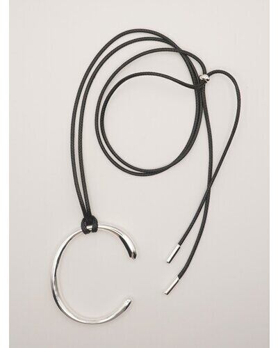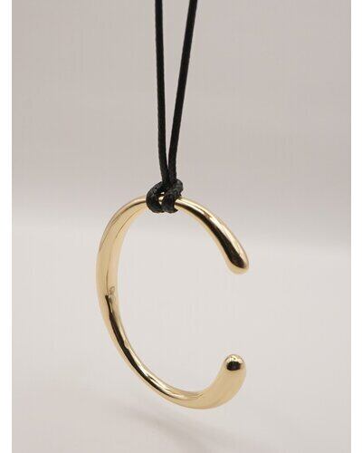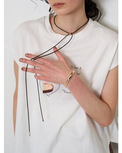 存在感のあるニュアンスCモチーフがぶら下がったコードネックレスは、「バングル」「チョーカーネックレス」としてそれぞれ単品でも着用できるアイテムとなっております。美しい曲線で描かれたコンパクトなC型バングルは、手首にフィットする納まりのいいミニマルなデザインです。真鍮製なので、多少のサイズ調整は可能となっております。紐チョーカーは先端部分を前で垂らしたり、お手持ちのリングを通してサングラスホルダーにしても◎簡単に長さ調節できるのも嬉しいポイントです。バングル内側には「CHIGNON」の刻印入り。