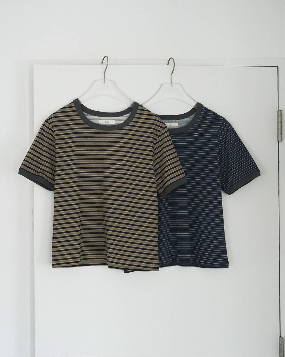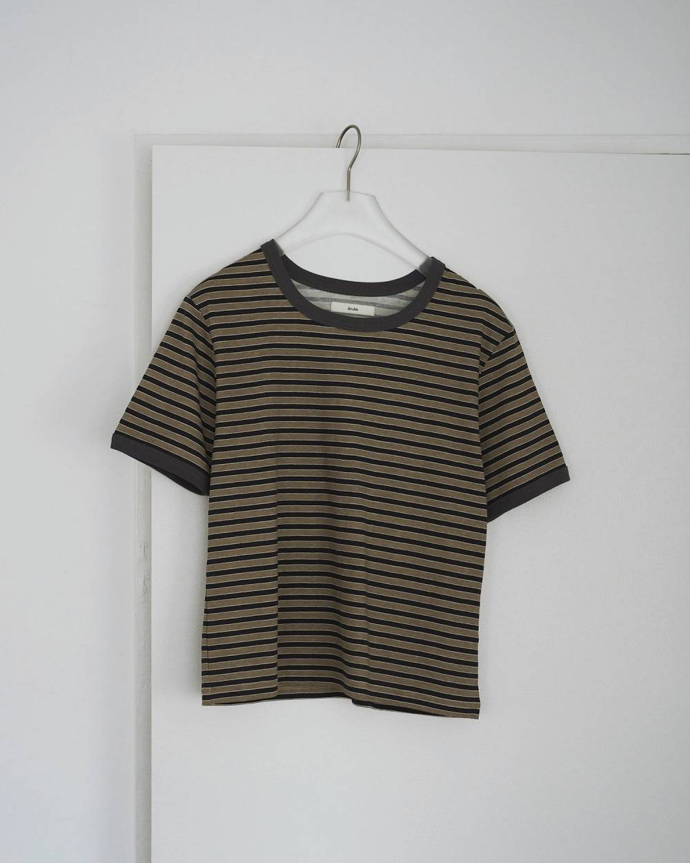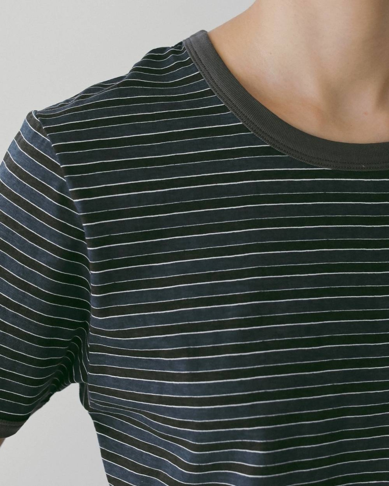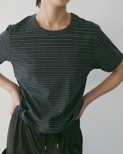 薄手のコットン素材を使用したボーダーTシャツ。程よくコンパクトなシルエットで、すっきりと着られる一枚です。ムラ感のあるプリントボーダーが、ヴィンテージライクな表情を演出。落ち着いた配色で、シックにまとまります。一枚ではもちろん、ジャケットのインナーとしても映えるアイテムです。