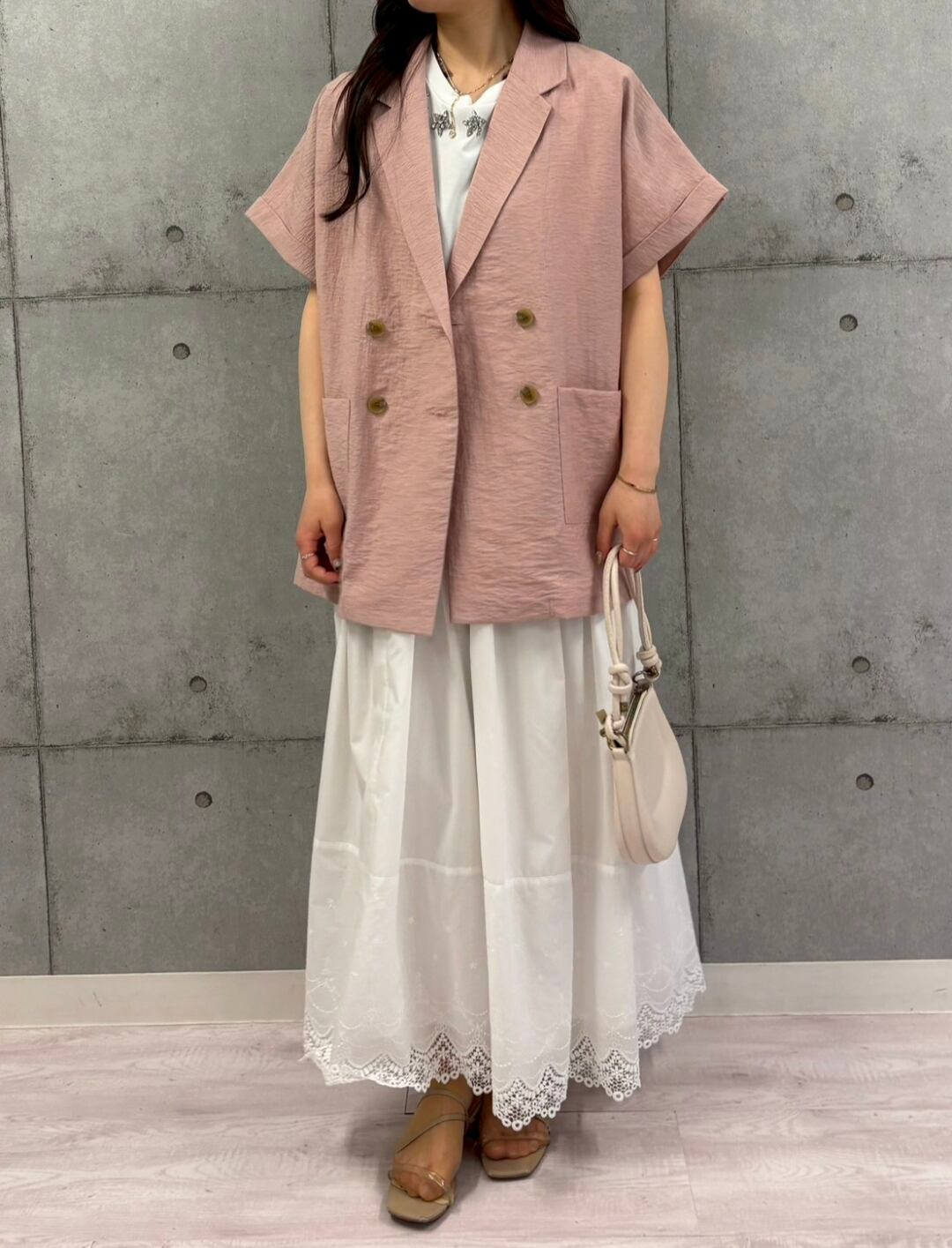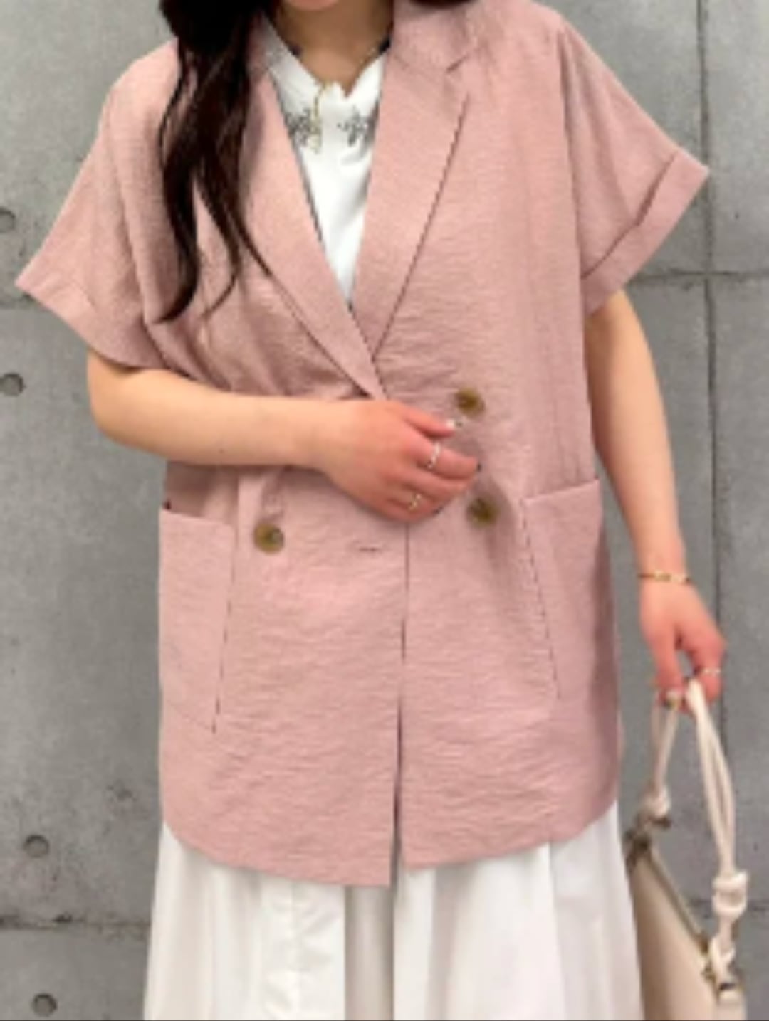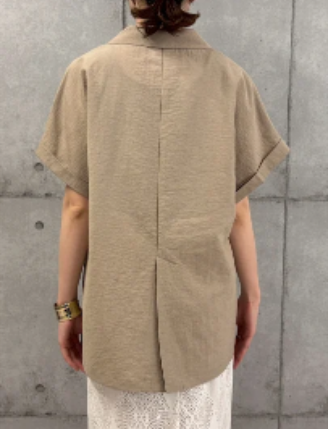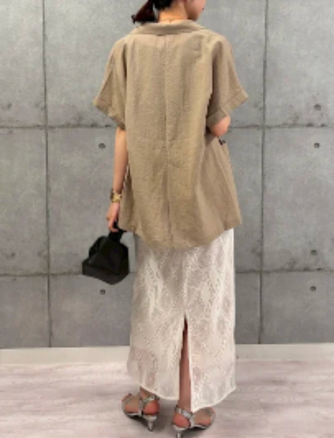 リネン混の軽い着心地が魅力で、凹凸感のある