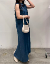 1枚でお出かけスタイルが完成する、テンセルデニム素材のワンピース。