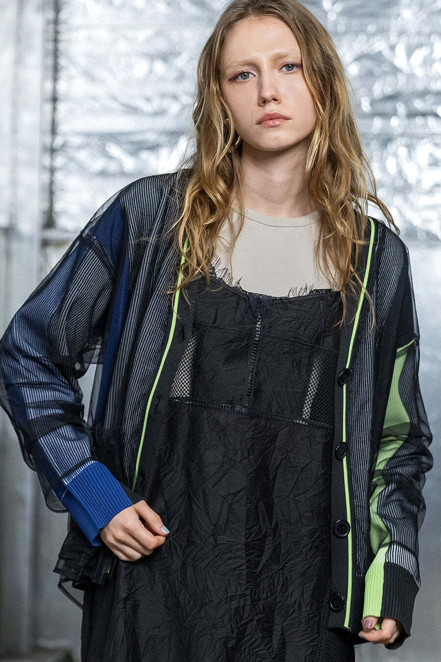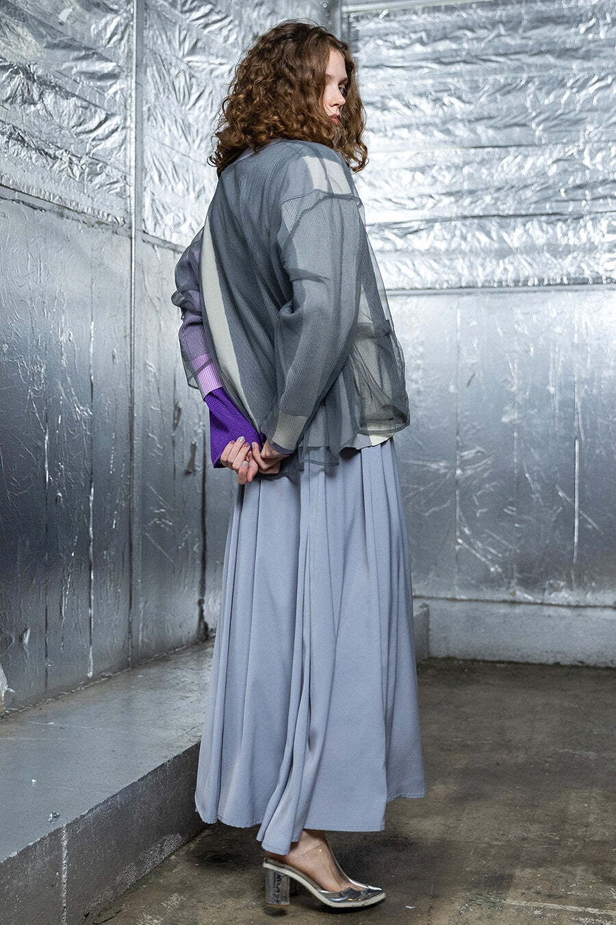 ニットの上には、全体をくるむようにチュールをかぶせたデザインで、