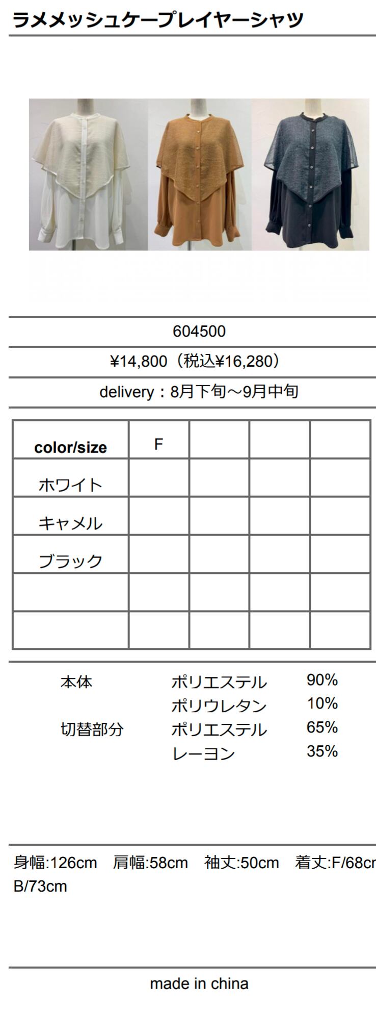 CYANtokyo'26A/W ラメメッシュケープレイヤーシャツ【604500】