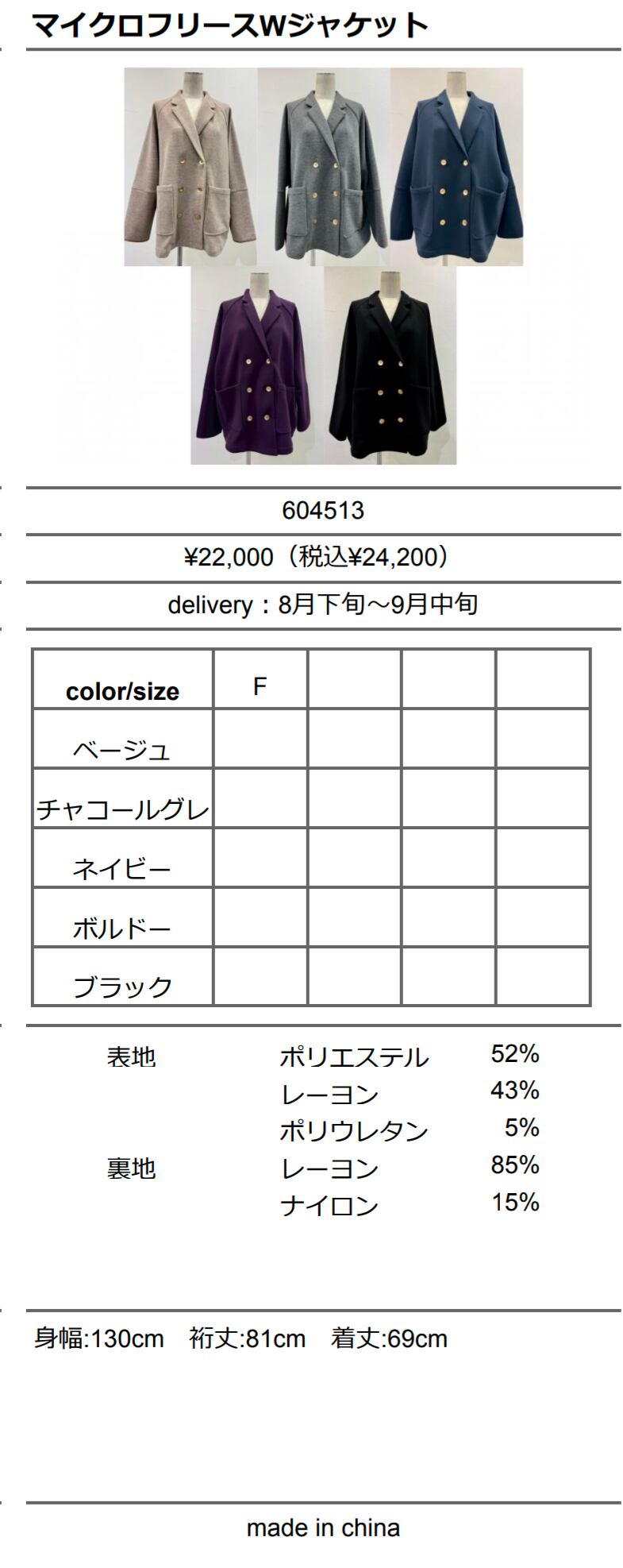 CYANtokyo'26A/W マイクロフリースWジャケット【604513】