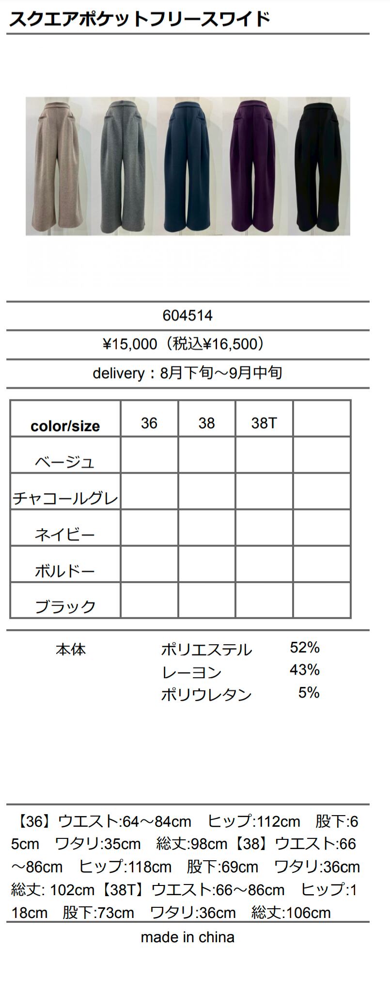 CYANtokyo'26A/W スクエアポケットフリースワイド【604514】