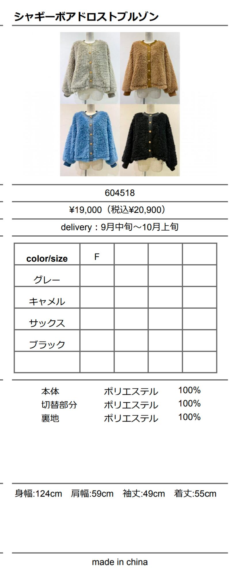 CYANtokyo'26A/W シャギーボアドロストブルゾン【604518】