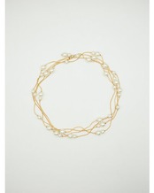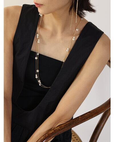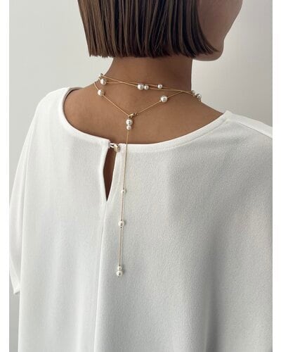 大小異なるパールがランダムに並んだマルチWAY仕様のパールネックレスは、巻き方がアレンジ自在◎2連にしてロング(胸下)、3連にしてミドル(胸上)、ぐるぐると4重に巻いてチョーカーのように、首に数回巻き付けて先端を1回結んでチェーンを垂らしたり、金具を使ってY字タイプにしたりと様々な着け方で楽しむことができます。